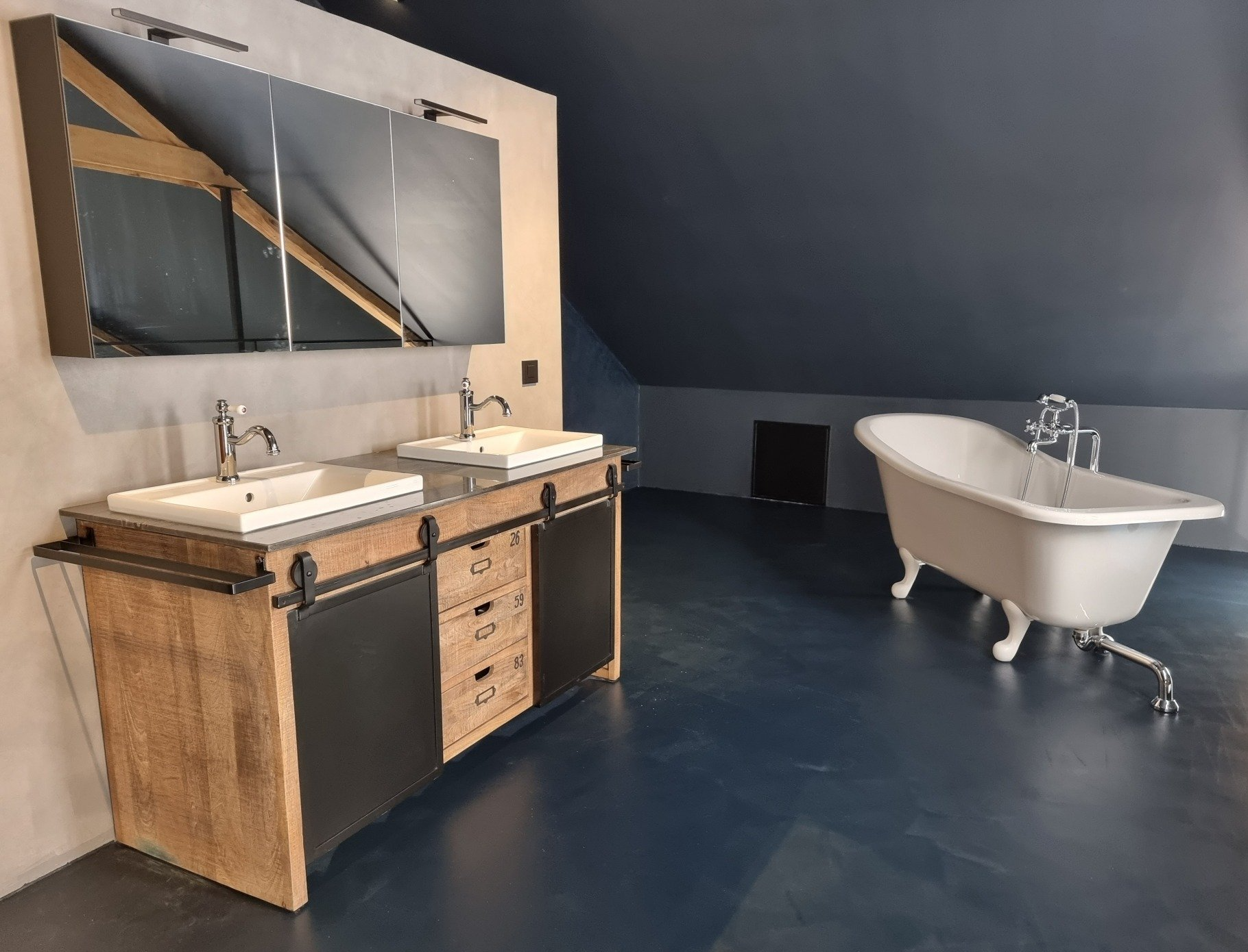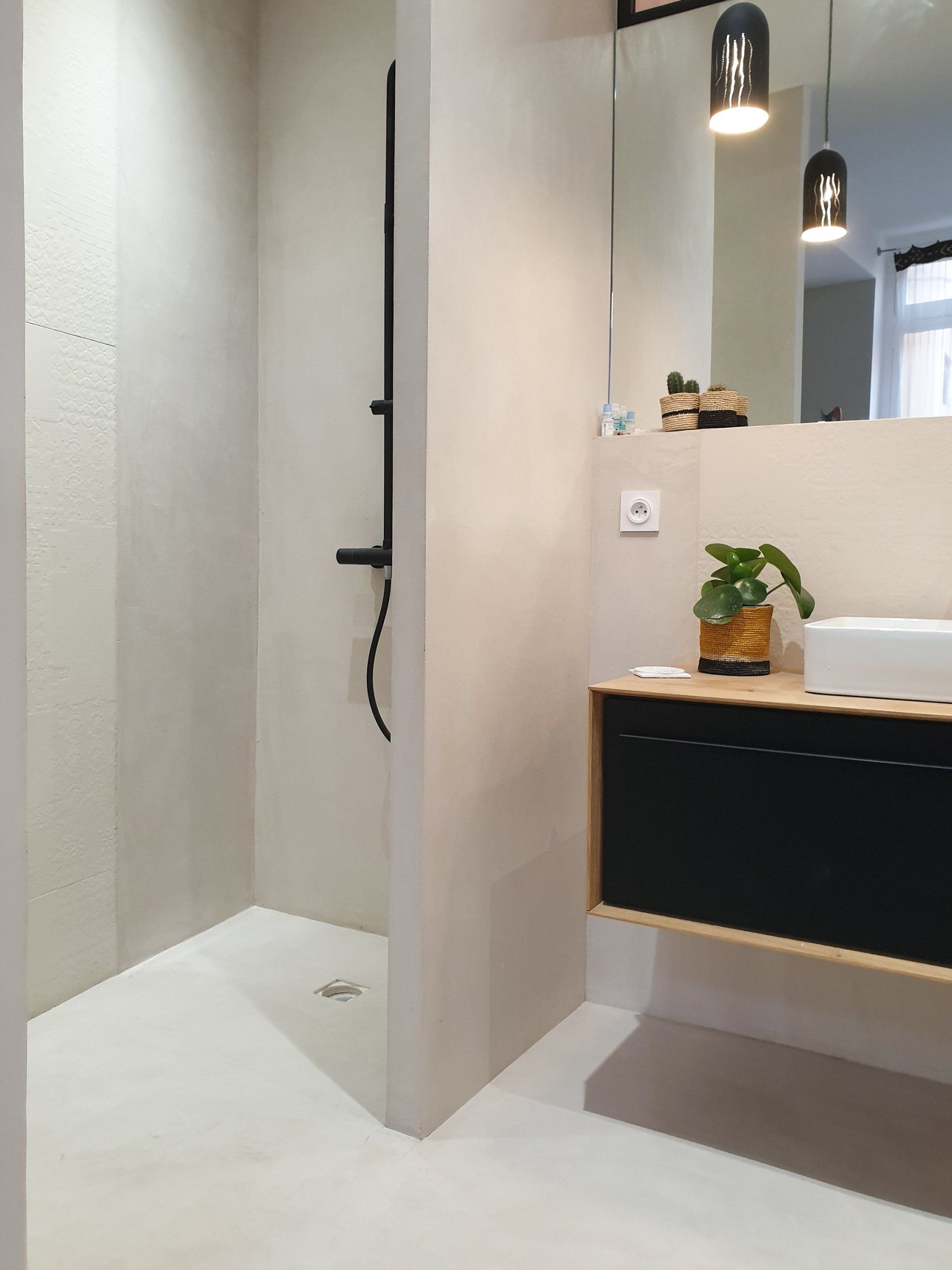 Douche en béton ciré sur plancher technique